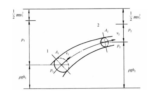 上式即為理想液體的伯努利方程式。由此可知,伯努利方程是能量守恒定律在流體力學(xué)中的一種表達(dá)形式。